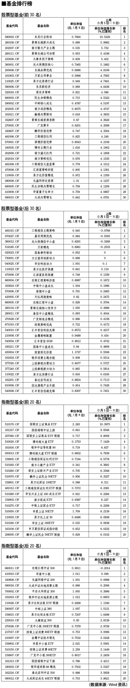 股票型基金排行榜[2012-01-13]