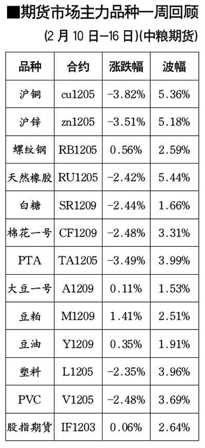 期貨市場主力品種一周回顧[2月10日-16日]