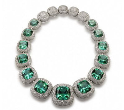 湖水藍碧璽鉆石項鏈 (Lagoon Tourmaline and Pavé Diamond Necklace) 鑲13顆坐墊形藍碧璽 (238克拉)