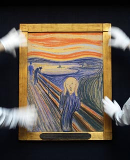 挪威畫家愛德華·蒙克的代表作《吶喊》近日亮相英國倫敦市中心的蘇富比拍賣行。它將于5月2日在紐約被拍賣。