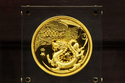 據(jù)介紹,該枚金幣由中國人民銀行發(fā)行,國家造幣廠生產鑄造,含純金10公斤,直徑180毫米,面額10萬元,成色99.9%,其正面圖案為中華人民共和國國徽襯以連年有余吉祥紋飾,并刊國名、年號,其背面圖案為“青龍”造型襯以裝飾龍頭為背景,并刊面額及“壬辰”字樣,全球限量發(fā)行18枚。