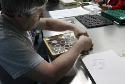 坐落在美國紐約州西點軍校山谷中的西點造幣廠建于1937年,但直到1988年才被正式定為美國造幣局的一個造幣廠。與丹佛和費城造幣廠負責鑄造流通硬幣不同的是,西點造幣廠負責鑄造貴金屬幣和其他獎章類產(chǎn)品,其中以1986年發(fā)行的鷹揚普制金幣最為出名。據(jù)介紹,西點造幣廠目前存有金幣價值約合800億美元,可謂紐約州“金庫”。進入西點造幣廠,工作人員向記者展示正在鑄造的“9·11”紀念幣。圖為工作人員為“9·11”紀念幣重量和形狀的檢測做準備。