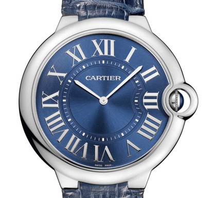 卡地亞藍氣球系列計時碼表在經典外形輪廓之上,加入了計時復雜功能,在黑色格紋表盤三點及六點時標處,分別用計數分鐘和秒鐘的小針盤取代經典的羅馬數字,日期窗格也隨之移至九點時標旁。藍寶石表冠左右安置著標準計時雙按鈕,按動之間,時間的流逝盡在掌握。