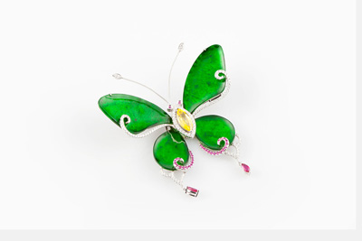 JADE于新光天地周年慶期間特別推出多件以“綠茵”為主題的系列珠寶,藉以花園為設計初衷,其設計理念亦采芳草、蝶等元素,成功地捕捉了大自然中芳草萋萋及蝴蝶的鮮活生動形象,呈現(xiàn)出翡翠靈巧別致之姿。