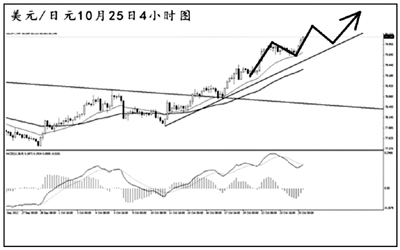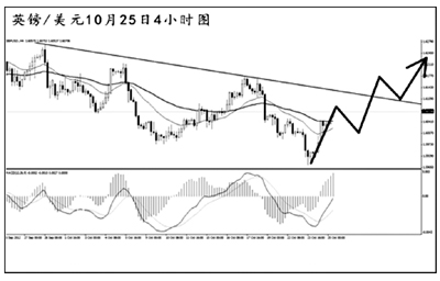 美元兌日元在突破日線圖下降趨勢(shì)線之后平穩(wěn)上沖,逐步向道氏高點(diǎn)阻力80.60挺進(jìn)。小時(shí)圖和日線圖的MACD均處于多頭動(dòng)能充盈階段,美元兌日元的上漲仍將持續(xù)。從現(xiàn)在的情況來(lái)看,日元升值的勢(shì)頭遭到了一定程度的遏制,若匯價(jià)成功突破80.60的阻力,后市還有進(jìn)一步上沖的動(dòng)力。