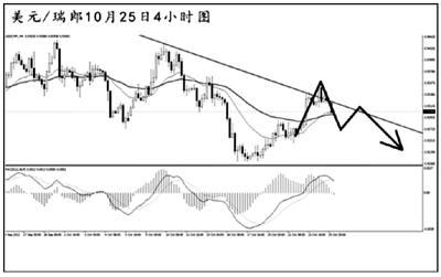 美元兌瑞郎的上行調(diào)整順利到達(dá)了日線圖下降趨勢(shì)線的阻力位,但并未形成有效突破。短線匯價(jià)在對(duì)趨勢(shì)線進(jìn)行挑戰(zhàn),即使升破,上方還將面臨道氏高點(diǎn)以及均線系統(tǒng)的壓制,美元兌瑞郎的持續(xù)上漲困難重重。預(yù)計(jì)后市匯價(jià)將以下落為主,操作上需尋找做空機(jī)會(huì)。