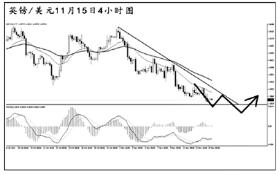 歐元兌美元跌破了大級別盤整通道下沿之后發起反抽,短線的下跌力度明顯減弱。這輪下調并沒有觸及此前上漲的50%回調位,后市若匯價重新回到1.2790上方,歐元仍有重新拾得漲勢的希望。短線匯價成功突破了下降趨勢線,預計后市將以小幅探底后的反彈走勢為主。