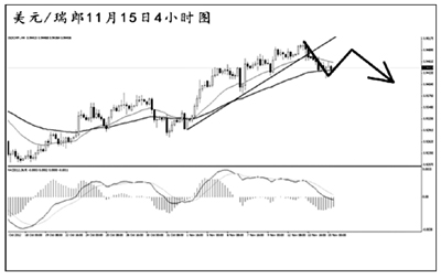美元兌瑞郎在突破0.9435的日線圖道氏高點阻力之后未能延續漲勢,短線匯價下行回落,重新向此位置發起回探。小時圖持續發生了MACD的頂背離信號,多頭動能明顯減弱,目前匯價已經將4小時圖的均線系統小幅跌破。預計短線再度大幅沖高的概率較小,后市將以逐步回落的節奏為主。