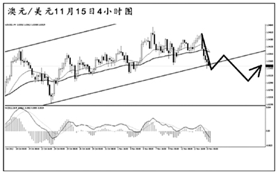 澳元兌美元仍然運行在4小時圖的上升通道之中,短線匯價大幅下落,目前正在考驗通道下沿的支撐1.0360一線。澳元最近的震蕩節奏明顯,能否跌破此通道成為后市繼續下行的關鍵。從最近的動能分析,預計澳元小幅刺破通道的希望較大,但由此展開一波單邊下跌并不容易。