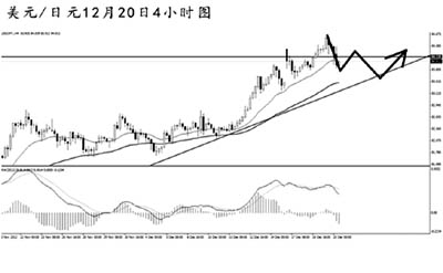美元兌日元向日線圖前方高點(diǎn)阻力84.15發(fā)起沖擊后回落,此后再度創(chuàng)出新高,顯示出日元目前的疲弱。但此次新高未能打開(kāi)過(guò)多的上漲空間。本周四上午,日本央行如期宣布擴(kuò)大資產(chǎn)購(gòu)置規(guī)模,日元走勢(shì)震蕩,短線匯價(jià)再度回落,預(yù)示著匯價(jià)沖擊85.50的阻力還需要一定的時(shí)間。