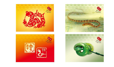 日前,香港郵政宣布,一套以“歲次癸巳(蛇年)”為題的特別郵票和相關郵品將于1月26日推出發售。這次發行的是賀歲生肖郵票第四輯的第二套,以中國民間工藝表現蛇年主題。香港郵政特別推薦賀歲絲綢郵票小型張及“十二生肖金銀郵票小型張——飛龍靈蛇”,其龍年和蛇年郵票分別以銀箔燙壓和22K鍍金金片印制。