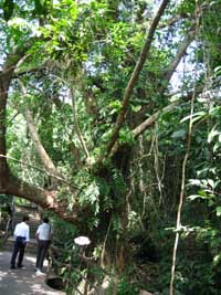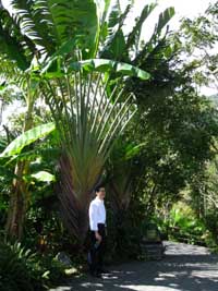 在雨林區,所到之處盡是奇形怪狀的植物,科研人員和景區規劃者們細心地為雨林中的花草樹木或立或掛地制作了寫有植物中文名和拉丁文名的介紹性標牌,方便游人與熱帶植物“親密接觸”。我默默地望著從來寡言的樹和花草,心想,如果時間允許,讓我系統地觀察、學習它們,哪怕能隨口叫出它們的名字,而非走馬觀花般一逛而過該有多好。