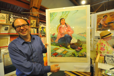 2月16日,在美國舊金山舉行的第46屆加利福尼亞國際古舊書展上,參展商亞歷山大·埃金展示中國上世紀70年代的宣傳畫《田間文化站》。