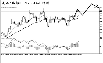 美元兌瑞郎經過了三波調整,對此前的上漲進行修正。本周匯價重拾漲勢,3天內連續收出兩根大陽線,顯示出短線多頭動能的強勁。前方高點阻力在0.9565,若突破此位置可再創新高,則宣告漲勢將進一步延續。從當前歐系貨幣的弱勢來看,預計后市美元兌瑞郎仍將保持上漲,操作上選擇逢低做多。