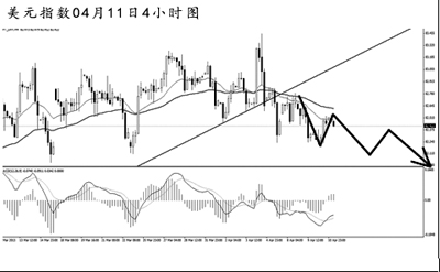 美元指數創出短線新高之后持續下挫,已經將大級別的上升趨勢線跌破。雖然日線圖均線系統仍然保持依托的狀態,但美元指數的上沖動能明顯不足。4小時圖持續發生MACD的頂背離信號,預計美元指數仍有再度下落的風險。短線關注82.00一線支撐,若價格跌破此位置,將打開進一步的下行空間。