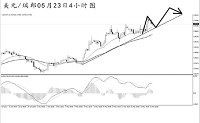 美元兌瑞郎短線的上漲斜率不高,但走勢平穩,小時圖明顯的MACD頂背離信號并沒有阻擋住匯價的上沖。日線圖上看,多頭動能充盈,匯價距離前方高點阻力0.9970仍有200多點的空間。短線匯價的漲勢并不凌厲,關注道氏點支撐0.9645,只有此點位被跌破,才能展開較為深度的下調。