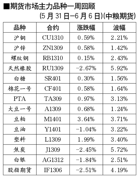 期貨市場(chǎng)主力品種一周回顧[5月31日-6月6日]