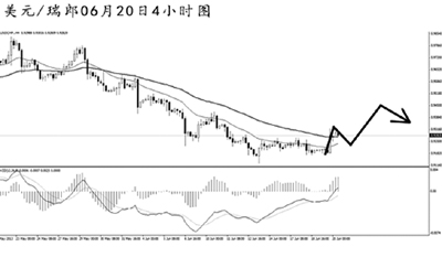 美元兌瑞郎自低位小幅反彈之后,持續在4小時圖均線系統的壓制之下震蕩盤整。借助于美元指數的此波走強,美元兌瑞郎突破了均線系統的壓制,后市有望向道氏高點阻力0.9415發起沖擊。此前匯價并沒有一鼓作氣挑戰0.9020的大級別支撐,為現在的反彈埋下伏筆。短線向上的主次節奏清晰,預計美元兌瑞郎將以走強為主。