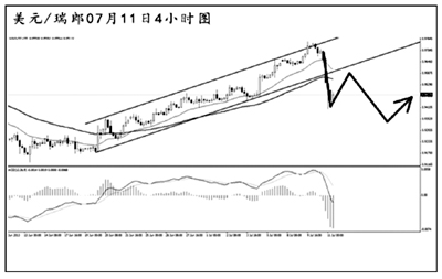 美元兌瑞郎完好運行在4小時圖的上升通道之中,匯價到達通道上沿之后明顯遇阻,多頭力度持續減弱。匯價未能順利沖擊日線圖阻力0.9835,短線強力下跌,已將通道下沿大幅跌破。日線圖MACD仍處于多頭動能充盈的階段,匯價存在小幅反彈的需求,但除非能夠回到0.9550上方,否則后市將以逐步走弱為主。