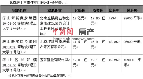 北京房山再現土地集中出讓 三宗地塊出讓金超53億元