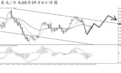▲英鎊兌美元此前的上漲并未能升破日線圖高點阻力1.5750,短線匯價的下跌力度強勁。4小時圖上看,英鎊下行接近上升趨勢線的支撐,但并沒有跌破,匯價隨即暴發出較為強勁的多頭動能。只要英鎊不走出直線沖高的節奏,則短線仍有下調挑戰趨勢線的動力,但在跌破此線之前,不建議做空。