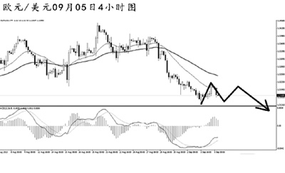 歐元兌美元將前方高點1.3415假突破之后急速下行,日線圖空頭動能強勁。4小時圖道氏低點支撐1.3205已被跌破,下方近期并沒有明顯的點位阻礙匯價走弱。短線均線系統保持壓制的狀態,但MACD持續發生底背離信號。預計歐元面臨一定的上調壓力,但整體下跌的走勢不會改變。