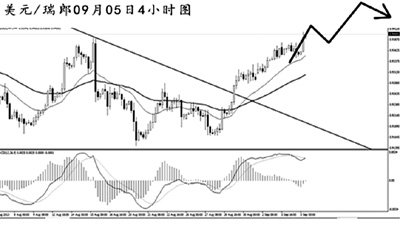 美元兌瑞郎低位反彈的勢頭保持良好,匯價上漲的斜率陡峭。4小時圖道氏高點阻力0.9395正在接受挑戰,預計升破的概率較高,均線系統呈多頭排列。雖然小時圖連續發生角度明顯的MACD頂背離信號,但上漲力度沒有明顯的減弱,在空頭動能暴發之前,不適合激進看空。