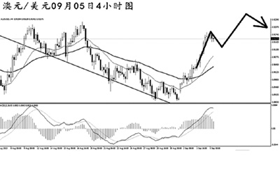 澳元兌美元此前的下跌并沒有威脅到0.8845的前方低點支撐,匯價構筑起一個小雙底反轉形態,隨即發起強力上攻。目前日線圖的55指數均線已經遭遇挑戰,這是自今年5月份以來,澳元首次能夠反彈沖擊均線阻力。4小時圖連續收出陽線,匯價上漲斜率過于陡峭,預計澳元面臨下調的壓力,但反彈走勢仍將延續。