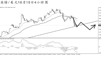 英鎊兌美元短線的下跌力度逐漸加大,日線圖上看,上升趨勢線仍未被跌破,但匯價即將測試此支撐的強度。4小時圖空頭動能占優,均線系統已經形成了向下的排列。1.5955的點位被跌破之后,英鎊已具備發起強力下攻的條件,目前需重點關注趨勢線,跌破之后可繼續選擇順勢做空。