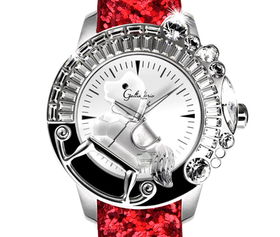 迦堤品牌的標志,在神奇木馬的設計意念中,加上極為炫目的Bling Bling閃爍的皮帶,令人目不暇給;再加上表殼著Galtiscopio招牌「GP
