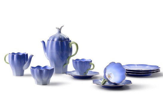 整套茶具/咖啡具系列囊括茶壺/咖啡壺、糖罐、茶杯、杯碟與襯碟。