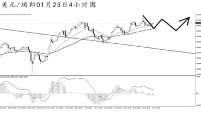 美元兌瑞郎升破日線圖下降趨勢線的阻力之后保持上漲節奏,目前多頭動能仍然強勁,匯價將向道氏高點阻力0.9250一線發起沖擊。4小時圖上看,上漲勢頭有所放緩,匯價面臨一定的下調風險。但均線系統的依托作用完好,只要短線不暴發出非常強勁的空頭動能,預計匯價仍將延續反彈勢頭。