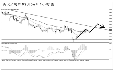美元兌瑞郎此前的強勁下跌小幅刺破了日線圖前方低點支撐0.8800,此后匯價反彈上行,力度較強。4小時圖上看,MACD處于多頭動能充盈的階段,下降趨勢線的阻力在0.8920,由于均線系統(tǒng)已被刺破,預(yù)計匯價將逐步向此位置發(fā)起沖擊,但若想展開更為強勁的上沖,必須將0.8930一線的道氏高點阻力升破。