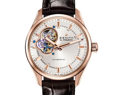 Primero旗艦系列的其他機(jī)芯一樣,它每小時(shí)可達(dá)到36000次的高振頻,相當(dāng)于每秒鐘震動(dòng)10次。機(jī)芯嚴(yán)絲密合、造型精致、精準(zhǔn)可靠:每個(gè)夾板、結(jié)構(gòu)和零件的位置都經(jīng)過(guò)了仔細(xì)研究,以優(yōu)化其性能。表殼直徑40毫米,采用玫瑰金或精鋼材質(zhì),銀色表盤(pán)上的開(kāi)心設(shè)計(jì)能以與眾不同的方式,親眼觀察到El
