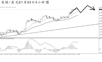 英鎊兌美元的上漲趨勢保持良好,目前已經站穩了1.7100一線上方。4小時圖MACD發生了一定的頂背離信號,但并沒有改變整體上沖的節奏。短線多頭力度再度展現,預計英鎊調整過后將繼續以上行為主。
