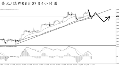 美元兌瑞郎在小幅創(chuàng)出新高之后強(qiáng)力回落,短線匯價(jià)的下調(diào)力度較強(qiáng)。美元兌瑞郎的高位盤整節(jié)奏已經(jīng)達(dá)到一周,短線空頭力度占優(yōu),預(yù)計(jì)后市將展開進(jìn)一步的下行,在跌破上述支撐之前,做空需謹(jǐn)慎。