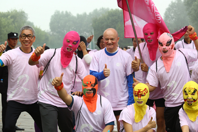 GE 2014“關(guān)愛先行 粉紅行動”關(guān)愛女性乳腺健康大型公益活動日前在北京奧林匹克森林公園開啟。此次活動旨在提倡“早預(yù)防、早發(fā)現(xiàn)、早治療”的早健康理念,宣傳乳腺癌防治知識,并呼吁全社會加強對女性乳腺健康的關(guān)注。圖為健康愛好者頭戴臉基尼一起合影。
