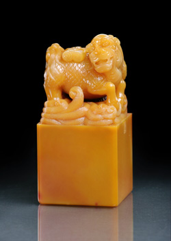 清人陳亮伯在《說田石》中這樣寫道:“石章以六面皆方,長在二三寸以上者為最佳。必石毫無瑕疵,而又亭亭入格者也。比如四面各一寸之石,長及三寸以上為入格,長二寸者即嫌其太矮矣。若國初精品,則雕鈕極其精致,以鳥獸水怪或仿古者為極精。然必鈕地鏟平,鈕自鈕而石自石,不可兩相牽混。若六面皆方,滿身雕作龍鳳形者,抑其次也,其鏤刻花卉或山水者為下。余與彥復即不復收錄。石質雖佳,斷在棄置之列。洋商頗重雕鈕,不惜巨資也。”陳亮伯在此以壽山石章為例,說明優良的壽山石材除了形制規整外,質地必須毫無瑕疵,再賦以上乘的雕工,方能成就壽山石雕完美的藝術價值和收藏價值。