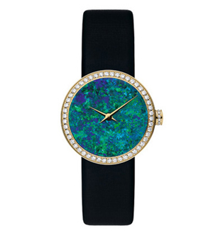 DIOR(迪奧)高級珠寶藝術總監Victoire de Castellane 最鐘愛的寶石蛋白石,它能綻放出各式各樣奇特的迷人色彩。“我最喜愛的寶石是蛋白石。因為它火數十足,宛如活著一樣。就如莫內的《睡蓮》,當中糅合各種色彩,彷佛有一只精靈活在其中!薄猇ictoire de Castellane。La D de Dior以蛋白石作為25mm表盤,將DIOR的制表工藝與珠寶專業完美結合,孕育出獨特非凡的腕表作品。全球限量一枚。