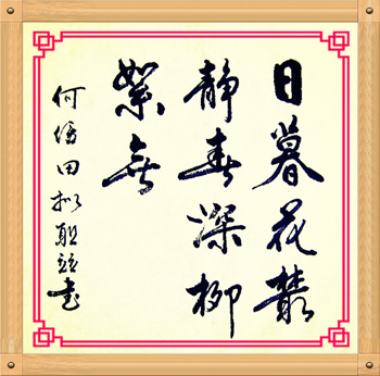 “我就是要規規矩矩地按照傳統的套路走,在秉持傳統中不斷升華自己、改造自己和完善自己。藝術水平如何,應由社會大眾來評說。搞藝術的都是專業人士,而服務的對象又多是圈外人士,如果圈外人都認可你的書法,就證明你的字已被認可。歷史最公平,史上留下的書畫大家的作品,字體都非常漂亮,若是嘩眾取寵,肯定流傳不開!焙慰√锸挚粗貢ǚǘ,不求書法之怪奇,力求書法之俊美。其字體婉態研華、雋爽明麗,穩而不俗、險而不怪、老卻不枯、潤也不肥,化古而出新;其結體寬博而又氣勢恢宏,骨力遒勁而又氣概凜然,疏密有致而又氣韻生動,大有“點如墜石,畫如夏云,鉤如屈金,戈如發弩,縱橫有象,低昂有態”之絕妙。其書法亦剛亦柔,時重時輕,或虛或實,不激不厲,欹正相生,章法意境全在其中。