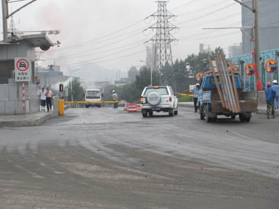 大貨車進(jìn)進(jìn)出出,10多根煙囪吞云吐霧。蒙蒙雨霧中,偌大的通鋼廠區(qū)繁忙而又安靜。如不親臨現(xiàn)場,很難相信兩周前這里曾上演過一場致人非命的怨恨“泄洪”。唯一能夠找到的“潰口”蹤跡,是通鋼明珠廣場地面上,被涂料覆蓋但依稀可辨的標(biāo)語:“建龍滾出通鋼”。