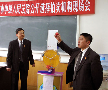 4月3日,在哈爾濱市中級法院選擇拍賣機(jī)構(gòu)現(xiàn)場會上,四起案件的申請執(zhí)行人用搖號的方式選擇拍賣機(jī)構(gòu)。用搖號方式選擇拍賣機(jī)構(gòu)在黑龍江省內(nèi)法院尚屬首次,使強(qiáng)制執(zhí)行標(biāo)的物的拍賣工作變得更加陽光透明。