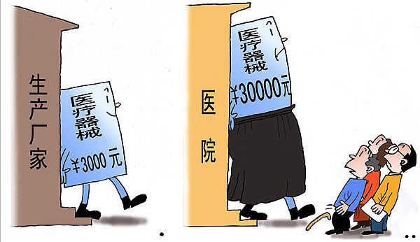 一個國產的心臟支架,出廠價不過3000元,可到了醫院便成了2.7萬元;一個進口的心臟支架,到岸價不過6000元,到了醫院便成了3.8萬元。9倍的心臟支架暴利已經超過了販毒。“醫療器械價格虛高,問題主要不在廠家,他們的利潤并不高,虛高的部分都產生于流通環節。”食藥監部門相關人員稱,醫療器械走出廠門首先要給自己找獨家代理商,經過各級代理商才進入醫院,這中間至少經過四個環節。新華社發