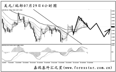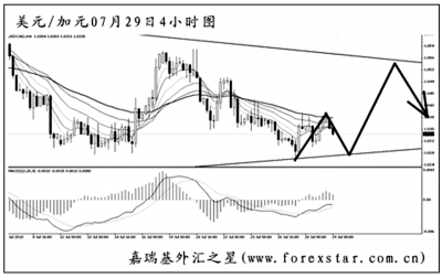 ▲美元兌瑞郎此前4小時圖中發(fā)生了一連串的MACD底背離信號,空頭動能持續(xù)減弱。目前匯價已將包含背離點的下降趨勢線升破,預(yù)計后市將發(fā)生一波較為明顯的反彈。美元兌瑞郎的風(fēng)險在于重新下探一次前方低點1.0400一線,但再創(chuàng)新低的希望已經(jīng)不大。