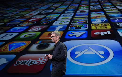 3月7日,蘋果CEO蒂姆·庫克在舊金山的蘋果產(chǎn)品的發(fā)布會上展示App