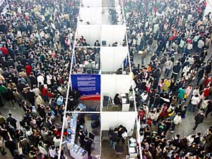 果然,到中午12點,前來應聘的大學生達到58276人,比發出入場券的數字47953超出1萬多!