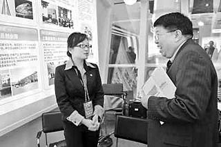 | 2008年12月25日,一位留學(xué)人員(右)在第十一屆留交會的上海展位前與工作人員交流。當(dāng)日,第十一屆中國留學(xué)人員廣州科技交流會在廣州舉行。新華社記者