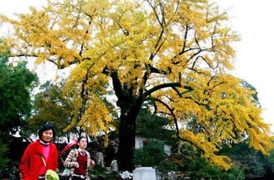 蘇州園林獅子林古銀杏樹(shù)“身披金甲”