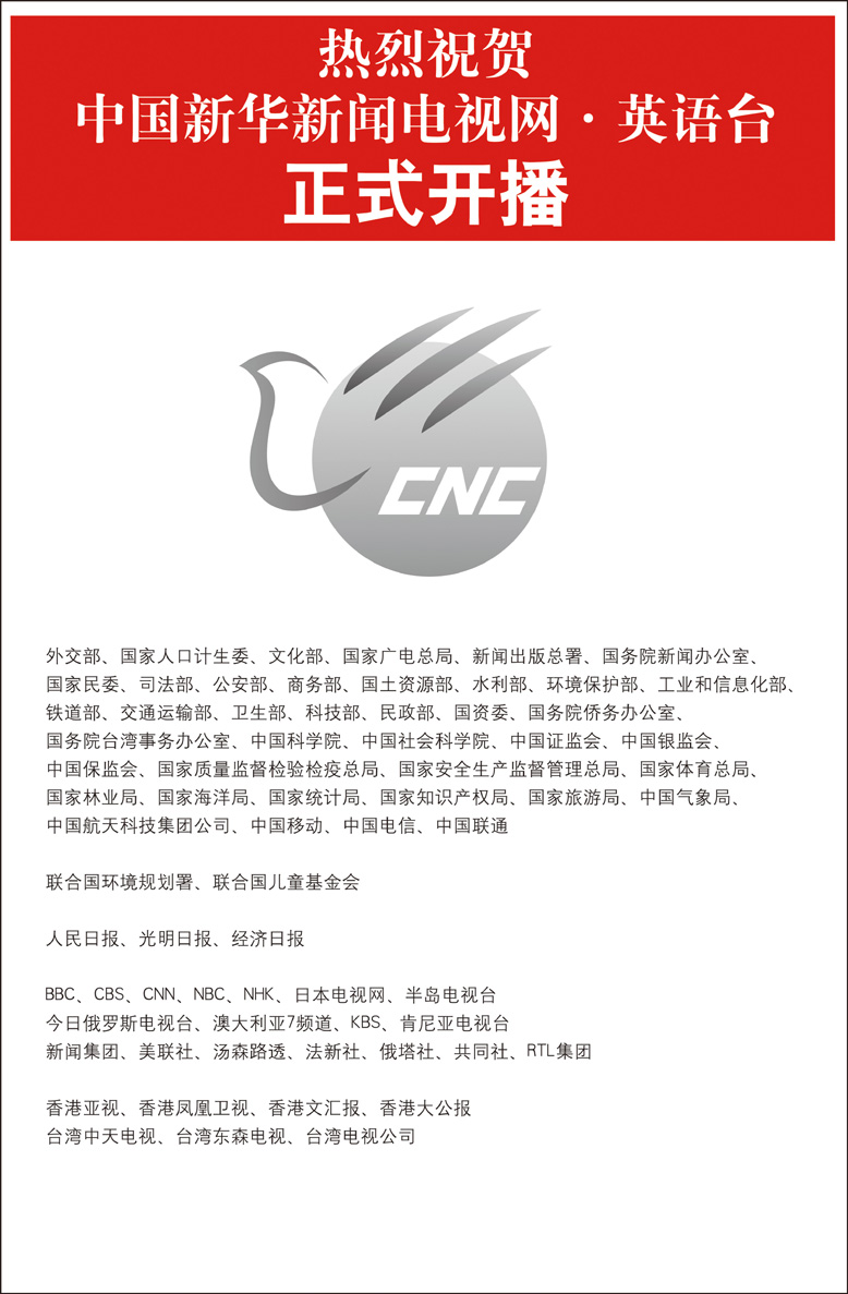 中國新華新聞電視網英語臺正式開播