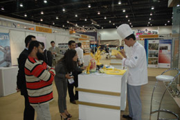 阿聯酋海商務旅游與會議展近日在阿聯酋首都阿布扎比展覽中心開幕。在開幕式上,來自中國的特級烹調師董立峰為參觀者表演了精湛的果蔬雕刻技藝。